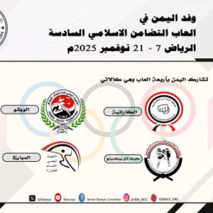 اقرت اللجنة الأولمبية اليمنية قائمة الالعاب المشاركة في النسخة السادسة من دورة ألعاب التضامن الإسلامي عام 2025م التي ستقام السعودية الرياض خلال فترة 7 الى 21 نوفمبر وذلك ببعثة رياضية متنوع...